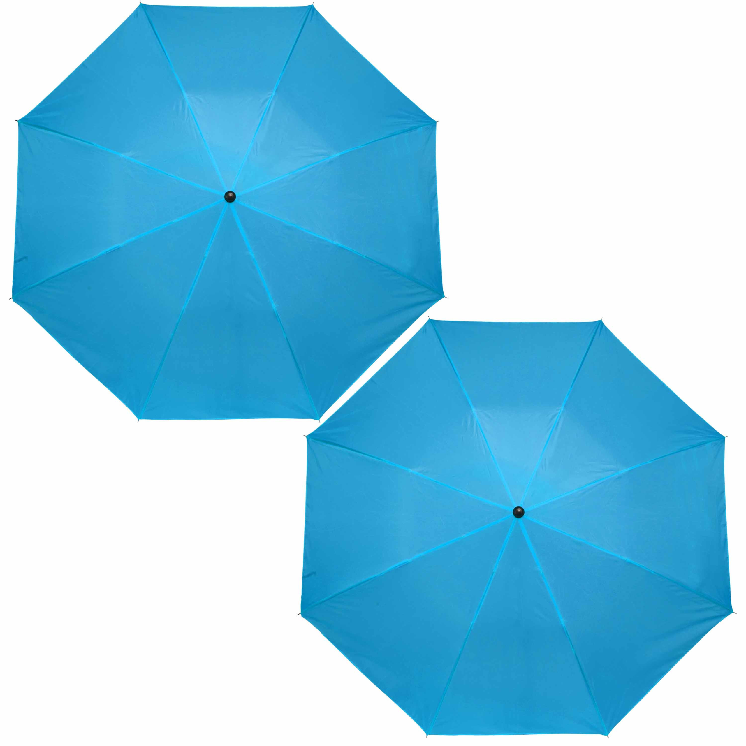 2x stuks kleine opvouwbare paraplus lichtblauw 93 cm