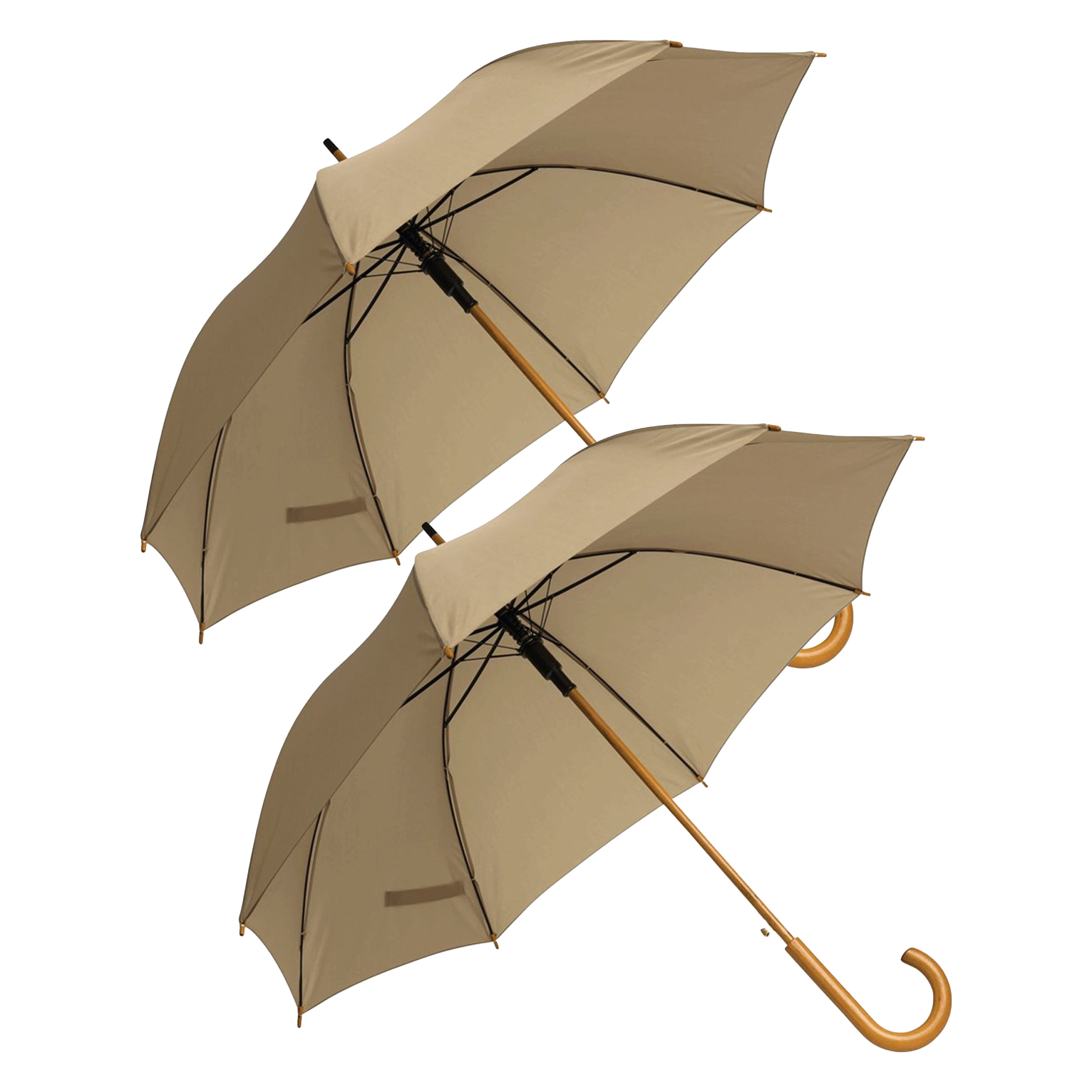 Rainmaster paraplu met houten handvat – 2x – beige scherm – Dia 103 cm